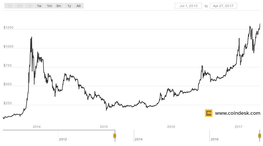 The price move caps a bullish month for the digital currency, which on 1st April averaged just under $1,100, an increase of roughly 20% in just a span of weeks.