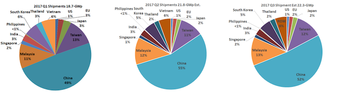 Figure 3 presents the share of PV shipments by country through the estimate for 3Q17.
