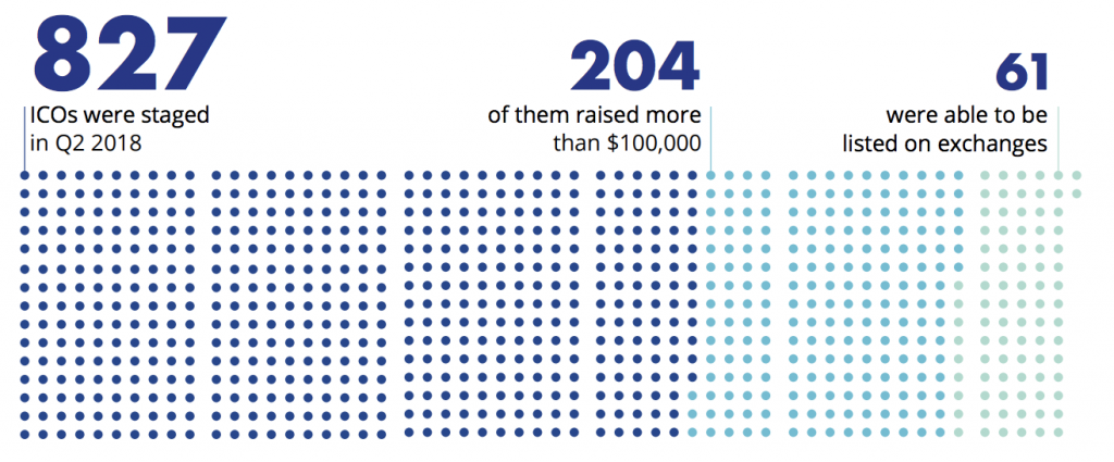 - Only 7% of ICOs from Q2 have been able to secure listings